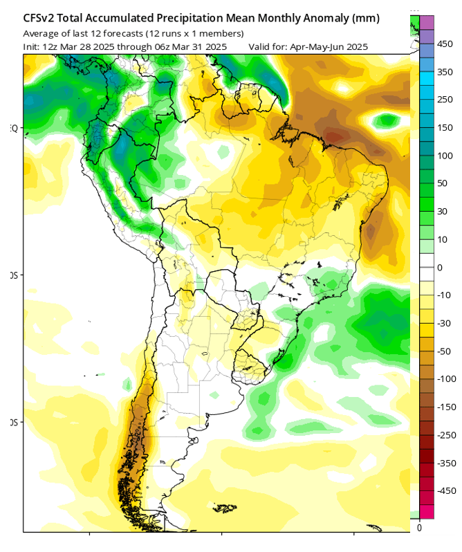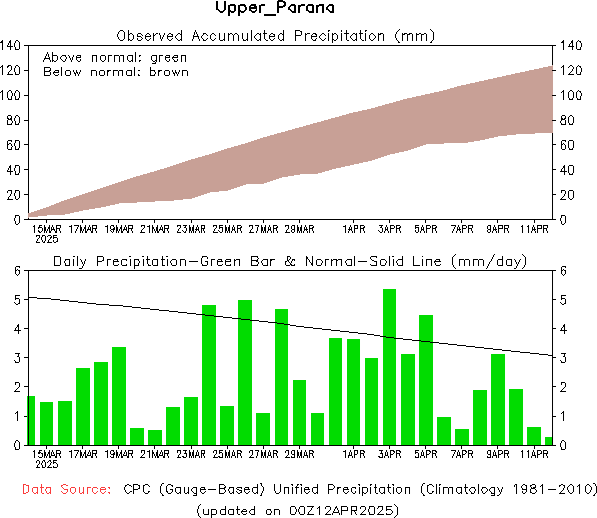 Para el trimestre considerado, se prevén valores infeiores a la normal en gran parte de la región oriental, mientras que en el resto del territorio nacional, se esperan condiciones normales.
