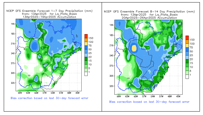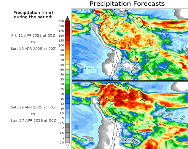 El pronóstico Hidrometeorológico del Centro Climático de referencia indica una tendencia semanal de poca significancia hidrológica en la cuenca de interés para la CHY con dispersión geográfica según sea la fuente consultada. (Ver gráfico Nro. 1).