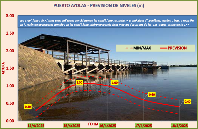 Las previsiones de Alturas son realizadas considerando las condiciones actuales y pronósticos disponibles y están sujetas a revisión en función de eventuales cambios en las condiciones hidrometeorológicas y de las descargas de las C.H. aguas arriba de la CHY.