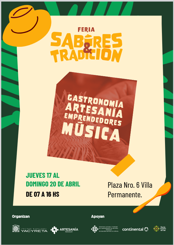 La Entidad Binacional Yacyretá, conjuntamente con el instituto Paraguayo de Artesanía (IPA) llevarán adelante, del 17 al 20 de abril en Ayolas, la feria “Sabores y Tradición”.