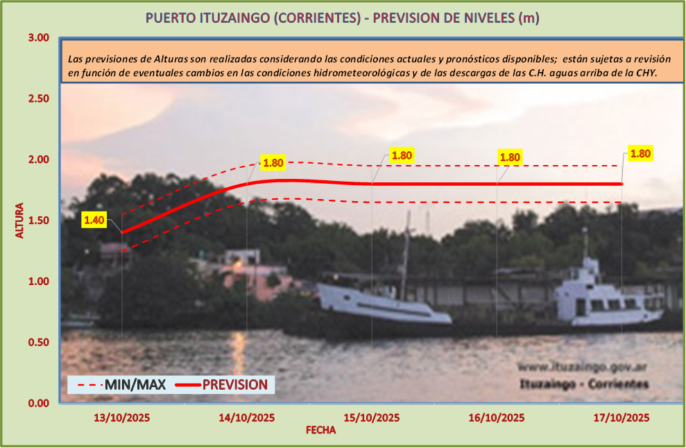 Las previsiones de Alturas son realizadas considerando las condiciones actuales y pronósticos disponibles y están sujetas a revisión en función de eventuales cambios en las condiciones hidrometeorológicas y de las descargas de las C.H. aguas arriba de la CHY.