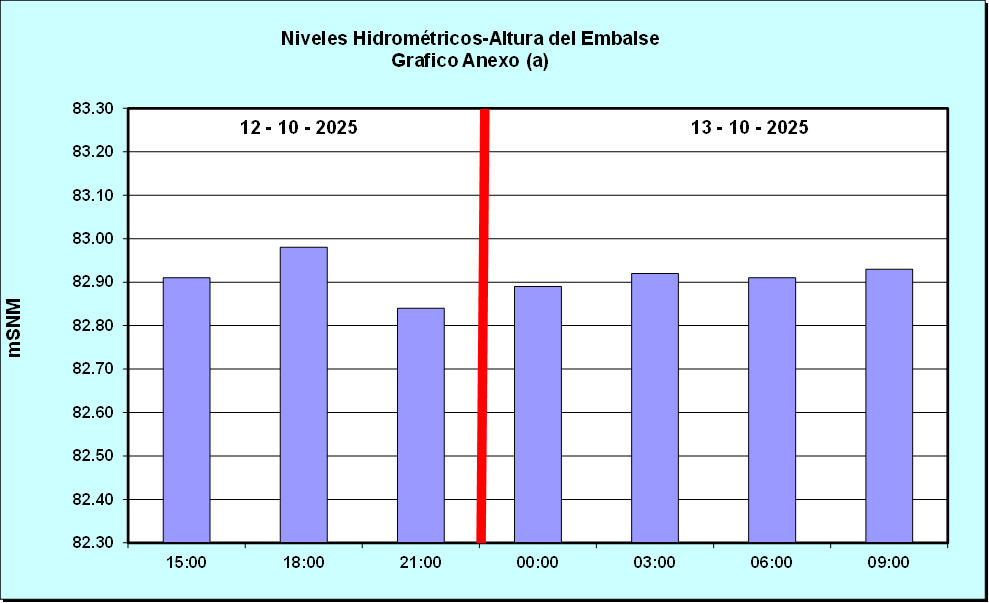 Nivel de Ayer (06:00 hs) = 82.89 mSNM Nivel de Hoy (06:00 hs) = 82.91 mSNM