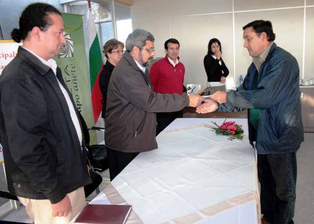 En un acto realizado este lunes, en San Ignacio, el director de la EBY Miguel Fulgencio Rodríguez entregó los cheques a los intendentes de los municipios beneficiados con el proyecto, para cubrir los gastos de combustible, reparación y mantenimiento de maquinarias (tractores).