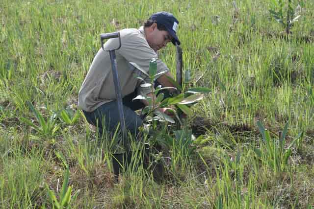 Foto: Plantación de arbolitos de Arary al costado del camino que conduce a la represa de Yacyretá.