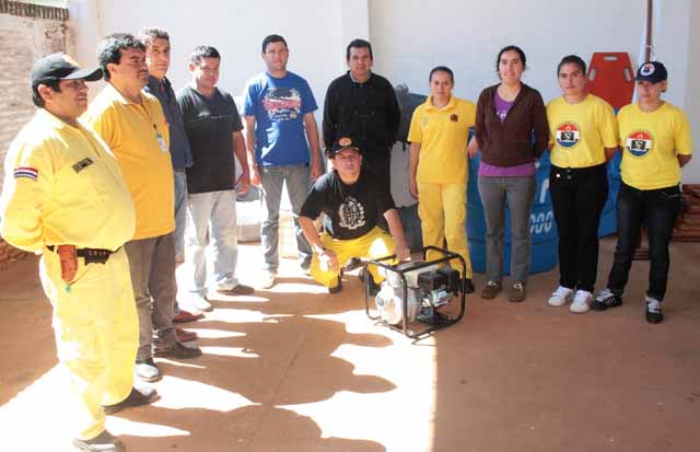 Un importante lote de equipamientos para bombeo de agua entregó la Entidad Binacional Yacyretá (EBY) a la Tercera Compañía del Cuerpo de Bomberos Voluntarios de la ciudad de Santa Rosa, Misiones, con el propósito de colaborar en el mejoramiento del servicio que presta la institución a la comunidad. El lote entregado está compuesto por 100 metros de manguera de tres pulgadas, un tanque de fibrocemento de mil litros de capacidad y una bomba de agua de 6,5 hp.