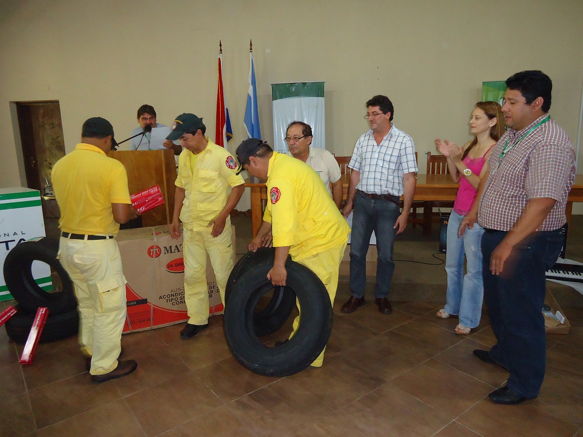 En el acto de entrega estuvieron presentes, la coordinadora Social de la Binacional Zunilda Llano Shneider, el delegado del Área de Relaciones Públicas, Rolando Rolandi, el responsable de la oficina de Asistencia Critica Juan Amarilla y el delegado del Área de Coordinación Social sede Misiones Walter Isasa y Bomberos Voluntarios quienes recibieron los autopartes.
