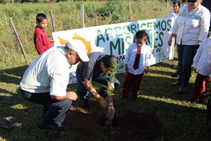 La campaña arboricemos Misiones, emprendida por la oficina de Educación Ambiental y el Vivero Forestal del Sector Medio Ambiente de la Entidad Binacional Yacyretá (EBY) llegó hasta la localidad de Santa Rosa, donde se entregó 500 arbolitos de especies nativas y frutales para arborizar los espacios público del distrito.