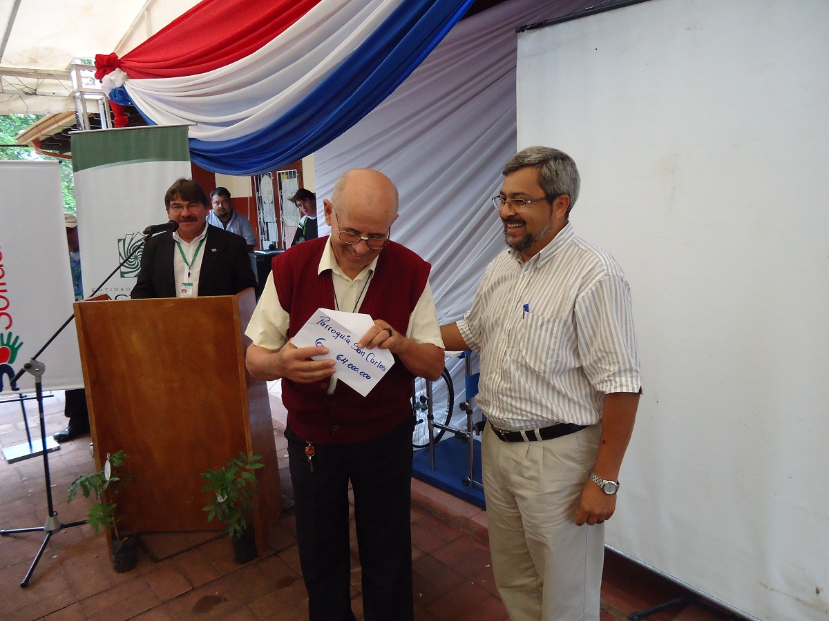 La entrega del aporte económico se realizó durante la donación de equipos de rehabilitación para la Escuela Nº 17 Despertar de la ciudad de Ayolas y fue recibido por el párroco Otorino Zamboni, encargado de la institución beneficiada.