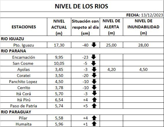 CESE DE AVISO HIDROLÓGICO Río Paraná: estado de situación al viernes 24 de noviembre de 2023 ATENCIÓN GENERAL: El presente mensaje va dirigido a la sociedad civil en general y a los gestores del territorio, para el diseño de las acciones que estimen sean convenientes. Continuando con los mensajes elaborados por la Entidad Binacional Yacyretá, […]