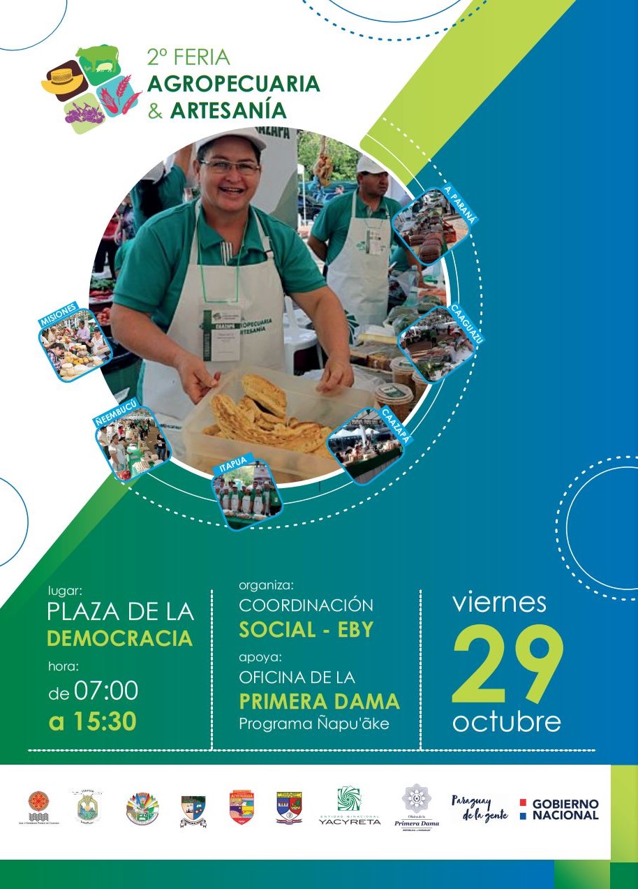 Pequeños agricultores del área de influencia de la Central Hidroeléctrica Yacyretá y de otros distritos del país tendrán la oportunidad de exponer sus productos durante la II Feria Agropecuaria, a realizarse en la Plaza de la Democracia de Asunción, el 29 de octubre próximo. Con asistencia financiera y técnica de la Entidad Binacional Yacyretá (EBY), […]