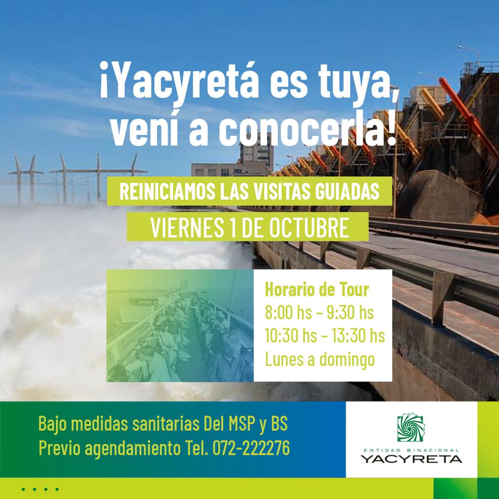 Yacyretá reinicia las visitas guiadas a su Central Hidroeléctrica desde este viernes 1º de octubre