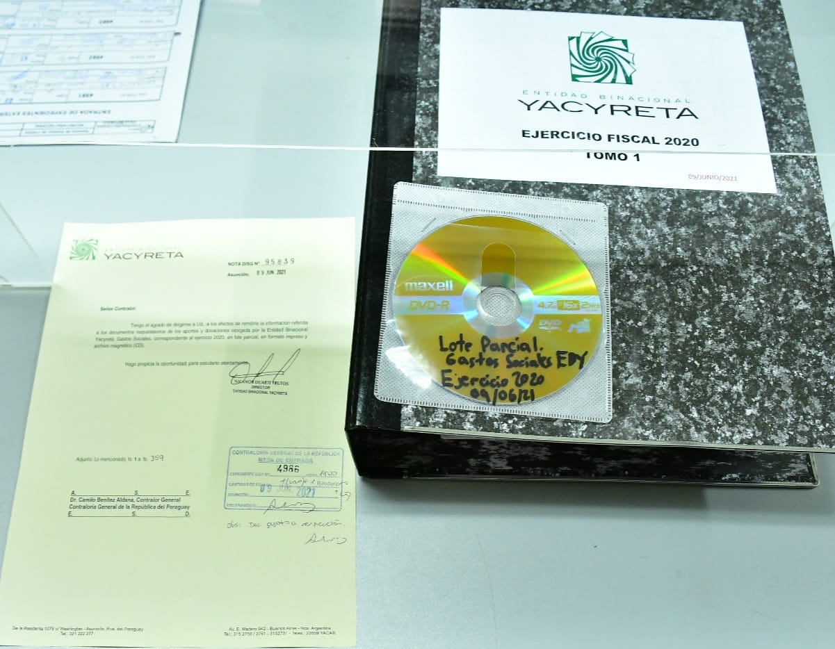 La Entidad Binacional Yacyretá entregó hoy a la Contraloría General de la República, más documentos respaldatorios de gastos sociales correspondientes al ejercicio fiscal 2020. En esta oportunidad, se puso a disposición de la institución, dos tomos con 194 órdenes de pago foliados del 1 a 484, por un monto de G. 45.675.745.546 (USD 6.736.109). Los […]