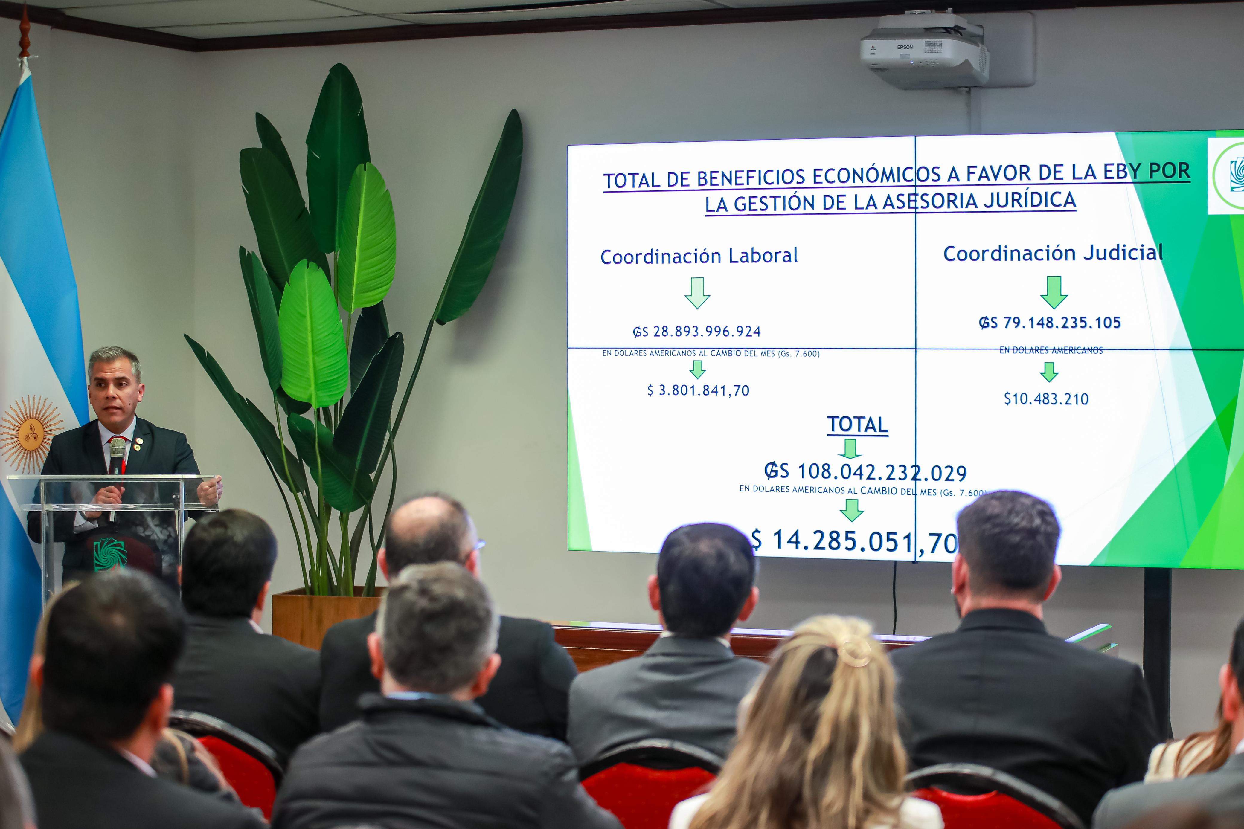 EBY evitó pagar USD 14.285.051 mediante gestiones jurídicas en un año