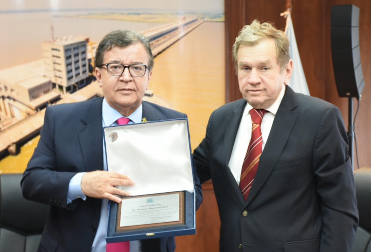 Nicanor Duarte Frutos recibió reconocimiento por apoyo de la EBY a la Policía Nacional