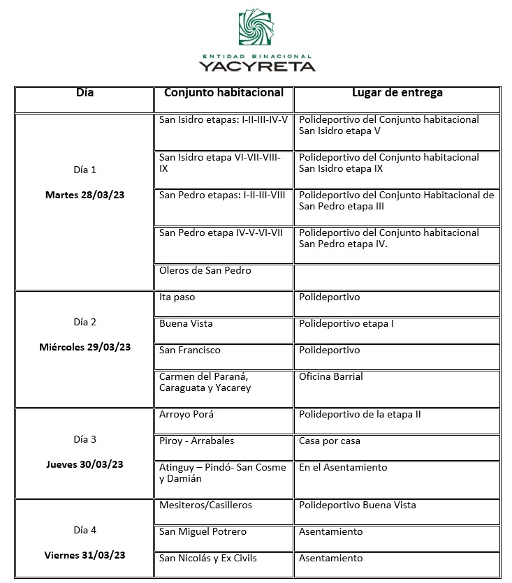 La Entidad Binacional Yacyretá (EBY) inició hoy la entrega de kits de víveres destinados a las familias que fueron relocalizadas por la institución en asentamientos urbanos y rurales. Asimismo beneficia a mesiteros, casilleros y otros sectores. La entrega de los kits fue consensuada con los presidentes de agrupación de los conjuntos habitacionales. Las bolsas de […]
