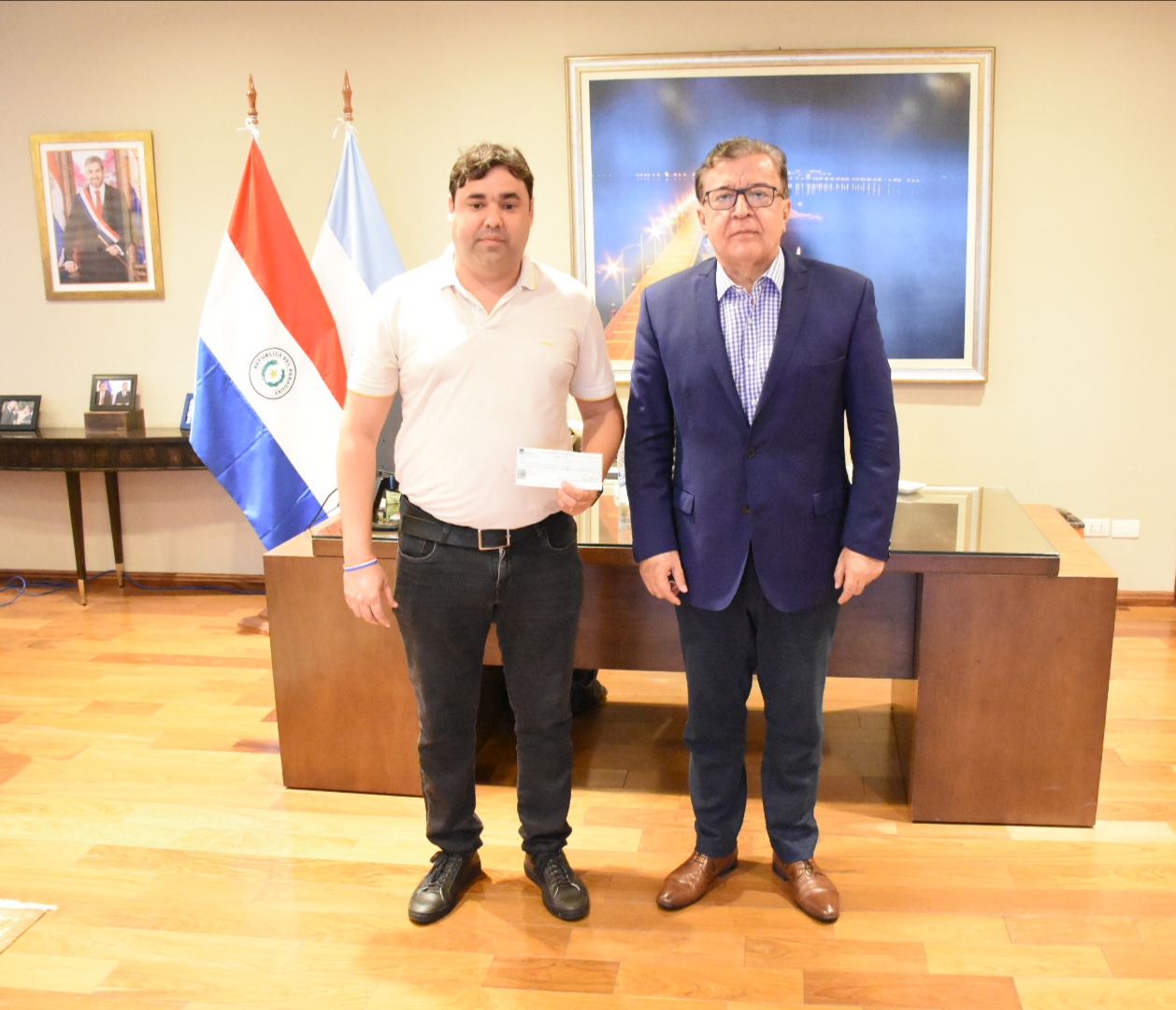 Intendente de Carmen del Paraná recibe apoyo económico de la EBY
