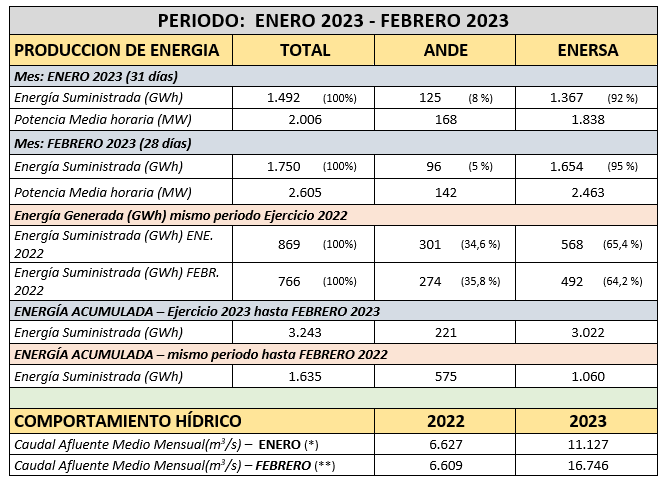 Informe oficial sobre generación de energía de la Central Yacyretá en febrero del 2023
