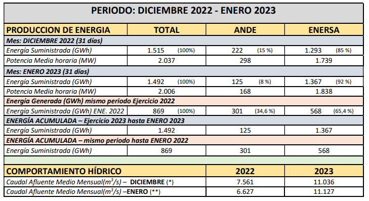 La energía total suministrada por la Central Hidroeléctrica Yacyretá al Sistema Interconectado Nacional Paraguayo (SINP) de Paraguay y al Sistema Argentino de Interconexión (SADI) de Argentina, en el cierre del mes de enero, fue de 1.492.701,1 MWh, 1,50 % inferior al mes de diciembre, que fue de 1.515.497,2 MWh. Correspondió a la Administración Nacional de […]