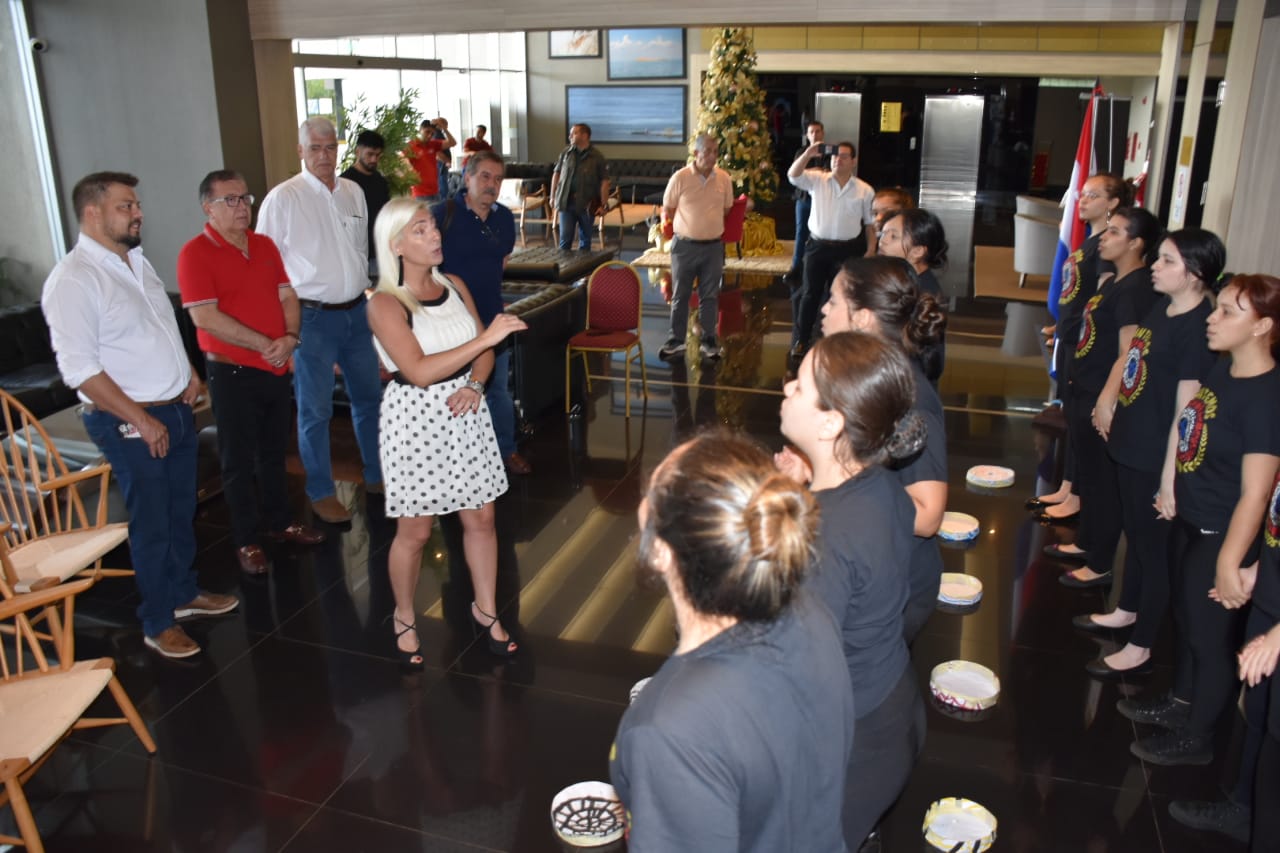 Representantes de Da Capo Coro, una agrupación musical conformada por 62 niñas de 11 a 17 años de edad, provenientes de distintas zonas de la ciudad de Encarnación, bajo la dirección de la Lic. Vanesa Utz se reunieron hoy con el director de la Entidad Binacional Yacyretá, Nicanor Duarte Frutos, en la capital itapuense. En […]