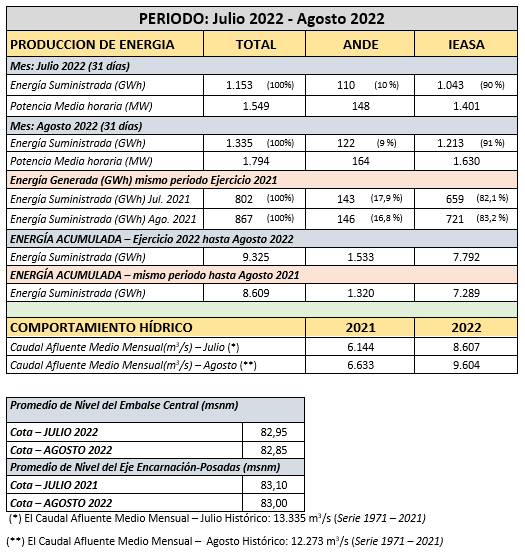 Datos oficiales sobre generación de Yacyretá en agosto