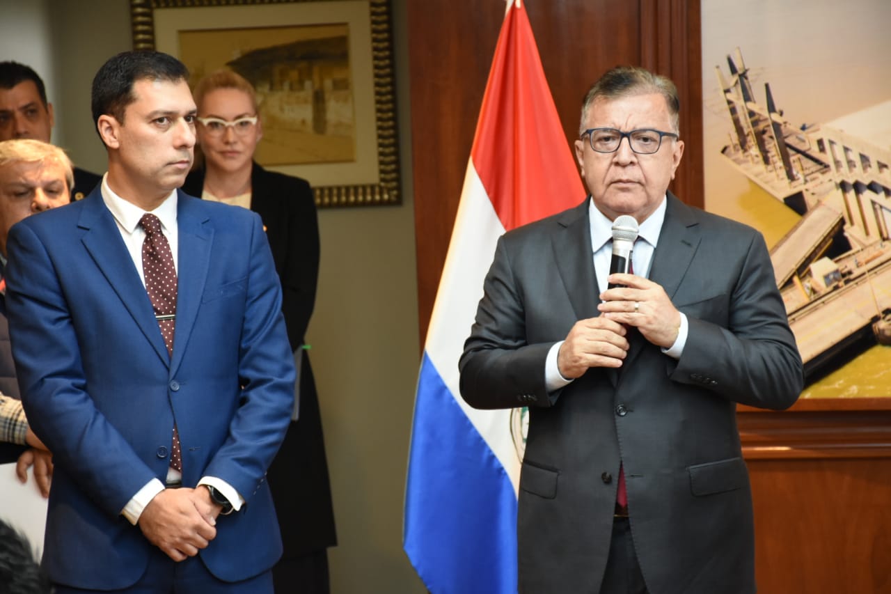 El director de la Entidad Binacional Yacyretá (EBY), Nicanor Duarte Frutos, puso hoy en funciones al nuevo Asesor Jurídico de la institución, Carlos Raimundo Huespe Aveiro, en reemplazo de Juan Carlos Duarte. Durante la ceremonia, el titular de Yacyretá instó al nuevo asesor a liderar, motivar e influenciar positivamente para redoblar los controles, a fin […]
