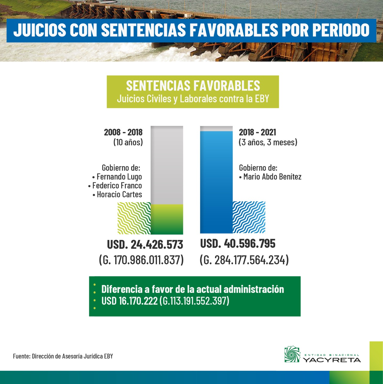 En tres años y tres meses de gestión y mediante sentencias favorables logradas en instancias judiciales, la Asesoría Jurídica obtuvo para la Entidad Binacional Yacyretá (EBY), ahorros por valor de G. 284.177.564.234 (USD 40.596.795), en demandas civiles y laborales. El monto que se evitó pagar durante este periodo de tiempo y la administración del director […]