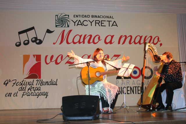 Foto: Liza Bogado y César Cataldo, en el concierto que ofrecieron en el Teatro de las Mil Viviendas de Ayolas,