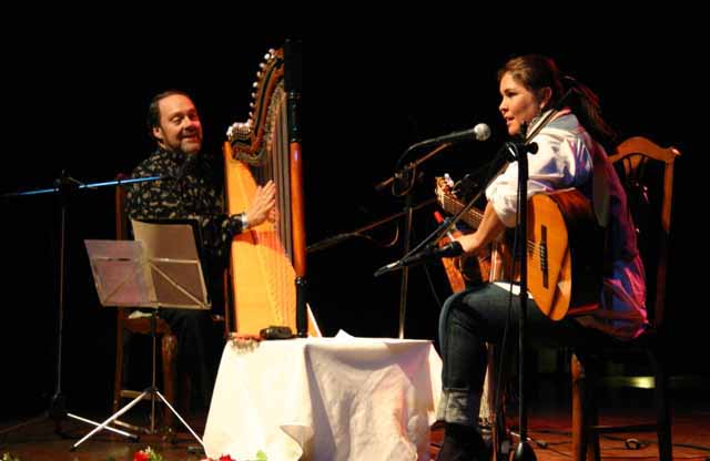 Lizza y César llevan la propuesta de “Arpa y voz”, demostrando las infinitas posibilidades del instrumento que es “Símbolo de la Cultura Musical del Paraguay por decreto del Poder Ejecutivo, firmado por el presidente Fernando Lugo en junio de este año. Desarrollarán un variado repertorio de canciones que apuntan al corazón, ejecutadas en arpa, guitarra y voz.