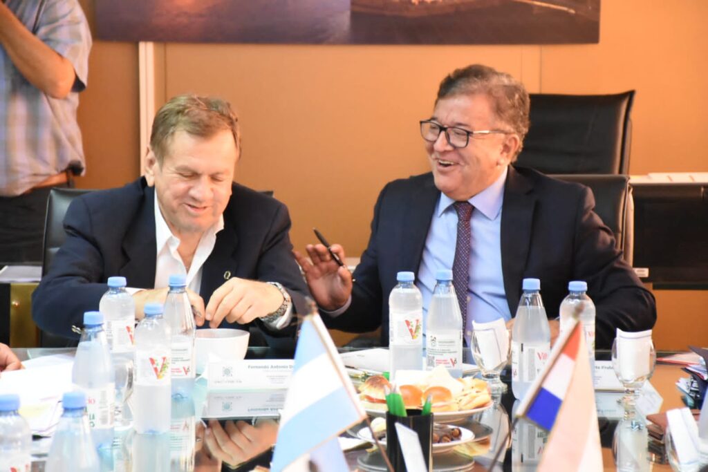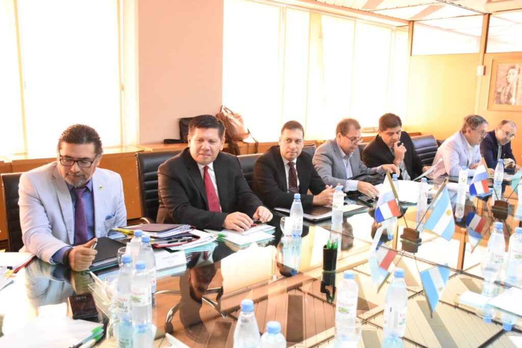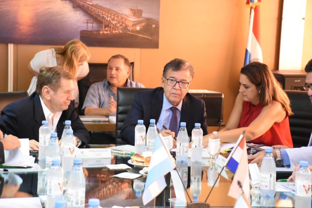 Los directores de la Entidad Binacional Yacyretá (EBY), Nicanor Duarte Frutos, por la margen derecha, y Fernando De Vido, por la izquierda, encabezaron en la ciudad de Buenos Aires una nueva reunión del Comité Ejecutivo, acompañados por los secretarios de dicha instancia administrativa, Alejandro Takahasi e Ignacio Salas Cabot, así como personal superior de la institución.
