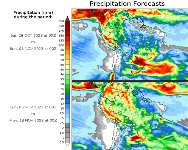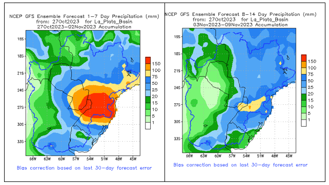 El pronóstico Hidrometeorológico del Centro Climático de referencia indica una tendencia semanal de significancia hidrológica en la cuenca de interés para la CHY con dispersión geográfica según sea la fuente consultada. (Ver gráfico Nro. 1).
