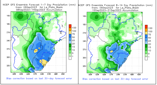 El pronóstico Hidrometeorológico del Centro Climático de referencia indica una tendencia semanal de significancia hidrológica en la cuenca de interés para la CHY con dispersión geográfica según sea la fuente consultada. (Ver gráfico Nro. 1).