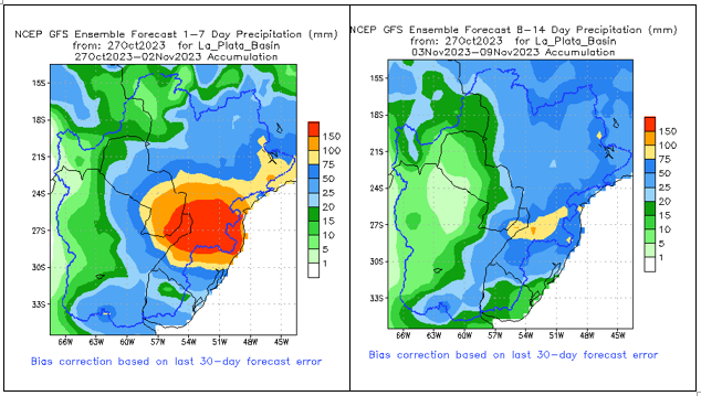 El pronóstico Hidrometeorológico del Centro Climático de referencia indica una tendencia semanal de significancia hidrológica en la cuenca de interés para la CHY con dispersión geográfica según sea la fuente consultada. (Ver gráfico Nro. 1).