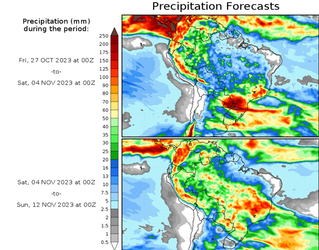 Los indicadores oceánicos muestran firmemente un estado de El Niño. Las temperaturas de la superficie del mar (TSM) del Pacífico central y oriental siguen superando los umbrales de El Niño. Los modelos indican que es probable que se produzca un mayor calentamiento del Pacífico central al oriental.