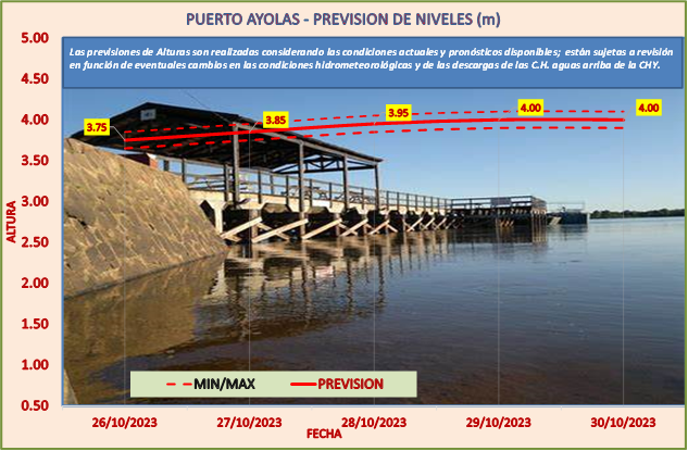 Las previsiones de Alturas son realizadas considerando las condiciones actuales y pronósticos disponibles y están sujetas a revisión en función de eventuales cambios en las condiciones hidrometeorológicas y de las descargas de las C.H. aguas arriba de la CHY.