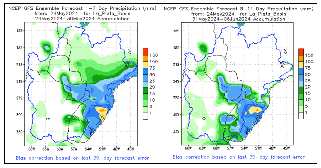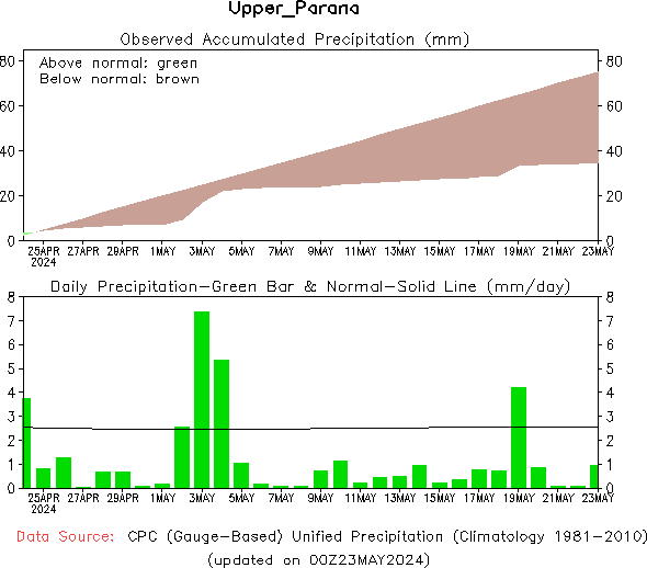 El pronóstico Hidrometeorológico del Centro Climático de referencia indica una tendencia semanal de leve significancia hidrológica en la cuenca de interés para la CHY con dispersión geográfica según sea la fuente consultada. (Ver gráfico Nro. 1).