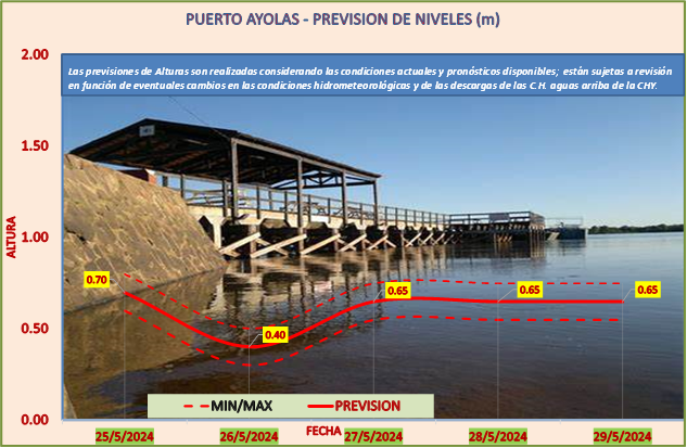 Las previsiones de Alturas son realizadas considerando las condiciones actuales y pronósticos disponibles y están sujetas a revisión en función de eventuales cambios en las condiciones hidrometeorológicas y de las descargas de las C.H. aguas arriba de la CHY.