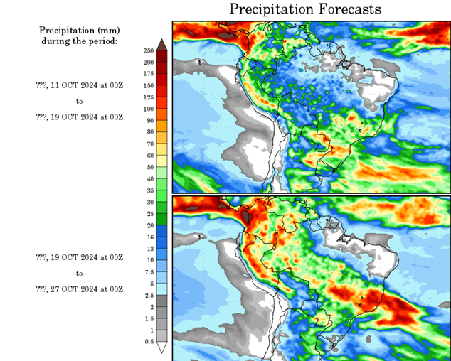 El pronóstico Hidrometeorológico del Centro Climático de referencia indica una tendencia semanal de leve significancia hidrológica en la cuenca de interés para la CHY con dispersión geográfica según sea la fuente consultada. (Ver gráfico Nro. 1).