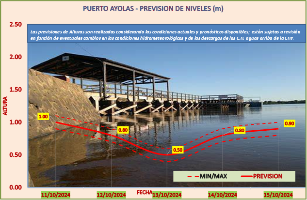 Las previsiones de Alturas son realizadas considerando las condiciones actuales y pronósticos disponibles y están sujetas a revisión en función de eventuales cambios en las condiciones hidrometeorológicas y de las descargas de las C.H. aguas arriba de la CHY.