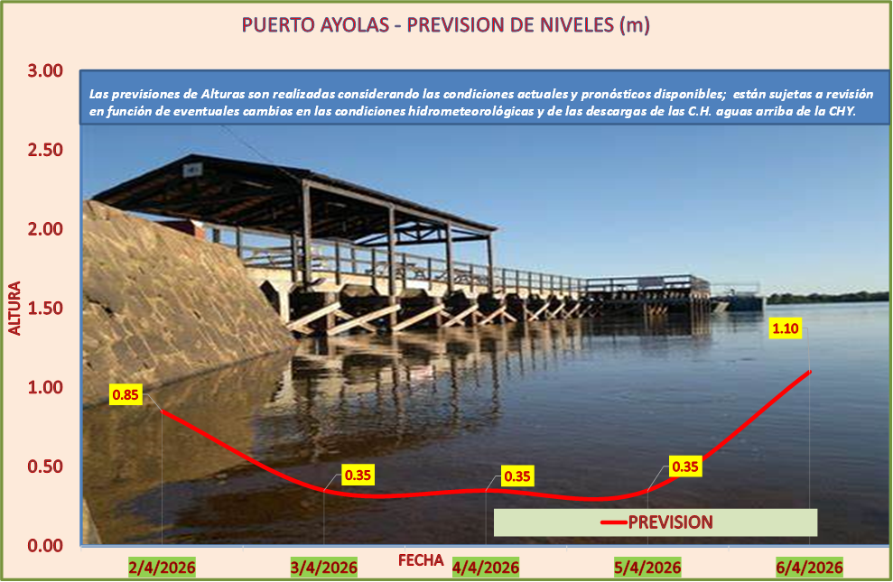 Las previsiones de Alturas son realizadas considerando las condiciones actuales y pronósticos disponibles y están sujetas a revisión en función de eventuales cambios en las condiciones hidrometeorológicas y de las descargas de las C.H. aguas arriba de la CHY.