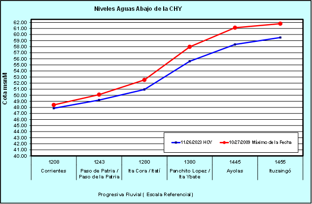 REFERENCIA: a modo de información – valores que originan riesgos de inundación en la zona de Ayolas.