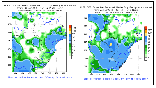 • El índice del Modo Anular del Sur (SAM, por sus siglas en inglés) se mantiene neutral al 14 de marzo de 2026. Se prevé que permanezca mayoritariamente neutral durante las próximas dos semanas.