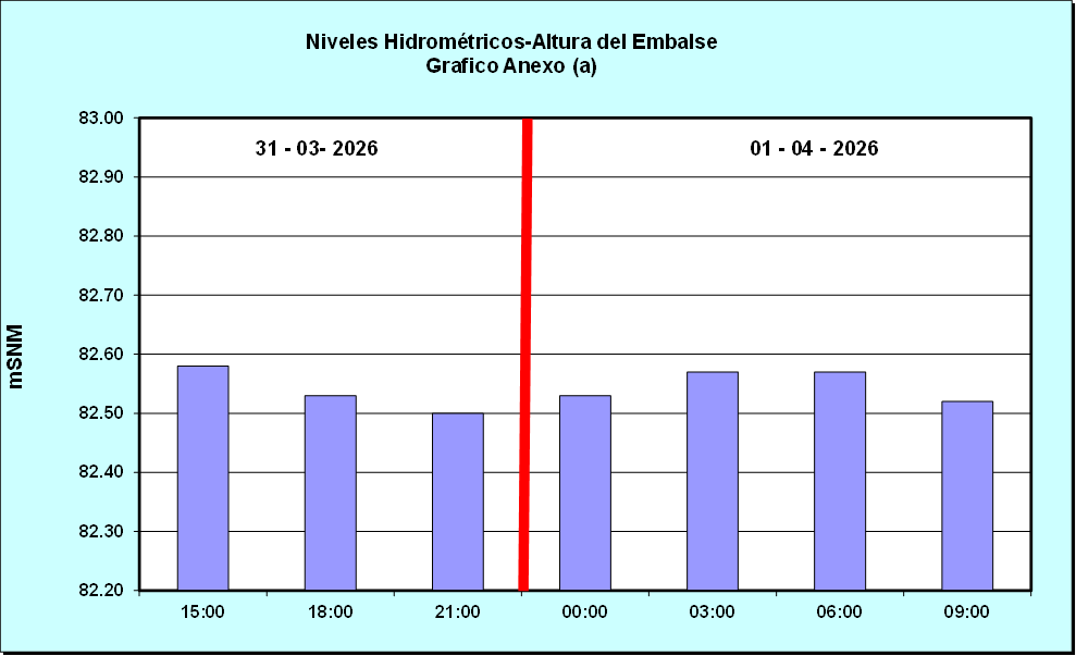 Nivel de Ayer (06:00 hs) = 82.66 mSNM Nivel de Hoy (06:00 hs) = 82.56 mSNM