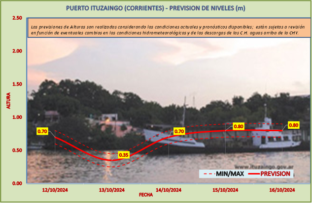 Las previsiones de Alturas son realizadas considerando las condiciones actuales y pronósticos disponibles y están sujetas a revisión en función de eventuales cambios en las condiciones hidrometeorológicas y de las descargas de las C.H. aguas arriba de la CHY.