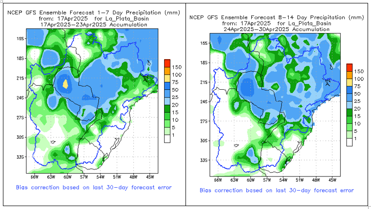 El pronóstico Hidrometeorológico del Centro Climático de referencia indica una tendencia semanal de poca significancia hidrológica en la cuenca de interés para la CHY con dispersión geográfica según sea la fuente consultada. (Ver gráfico Nro. 1).