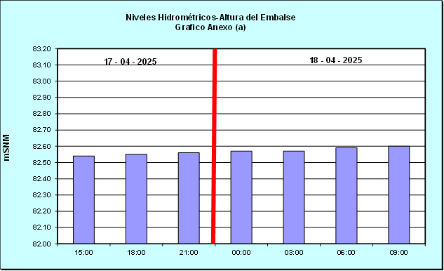 Nivel de Ayer (06:00 hs) = 82.52 mSNM Nivel de Hoy (06:00 hs) = 82.59 Msnm