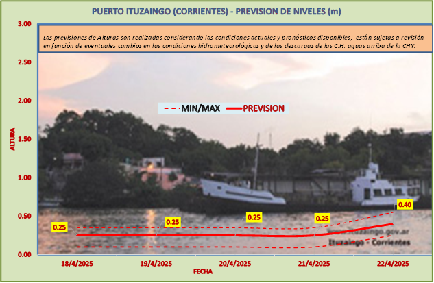 Las previsiones de Alturas son realizadas considerando las condiciones actuales y pronósticos disponibles y están sujetas a revisión en función de eventuales cambios en las condiciones hidrometeorológicas y de las descargas de las C.H. aguas arriba de la CHY.