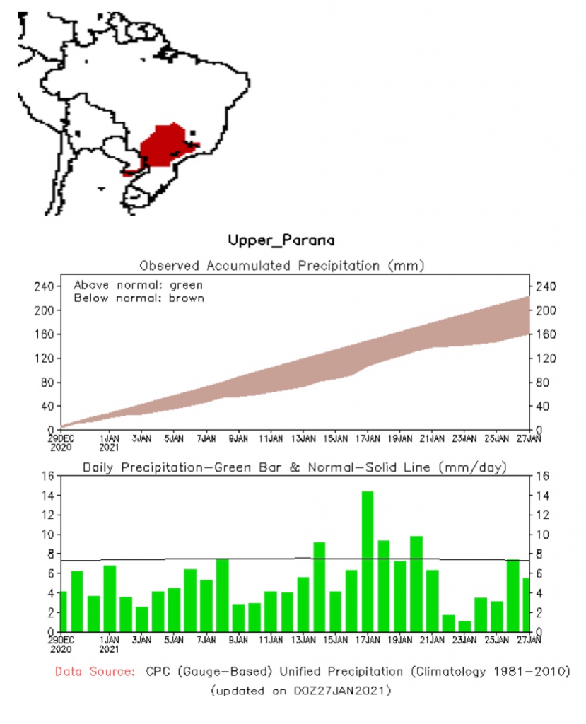 En el Puerto de Ayolas se registró una altura de 2.52 m (28/01/21 de la hora 03:00).