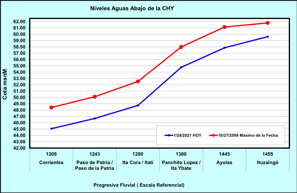 REFERENCIA: a modo de información – valores que originan riesgos de inundación en la zona de Ayolas.
