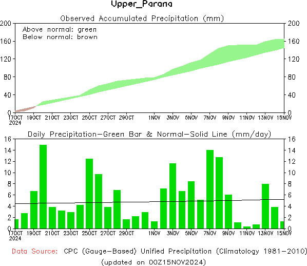 El pronóstico Hidrometeorológico del Centro Climático de referencia indica una tendencia semanal de leve significancia hidrológica en la cuenca de interés para la CHY con dispersión geográfica según sea la fuente consultada. (Ver gráfico Nro. 1).