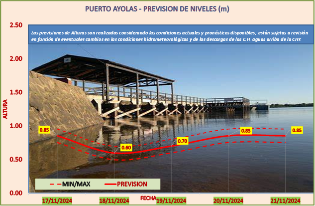 Las previsiones de Alturas son realizadas considerando las condiciones actuales y pronósticos disponibles y están sujetas a revisión en función de eventuales cambios en las condiciones hidrometeorológicas y de las descargas de las C.H. aguas arriba de la CHY.